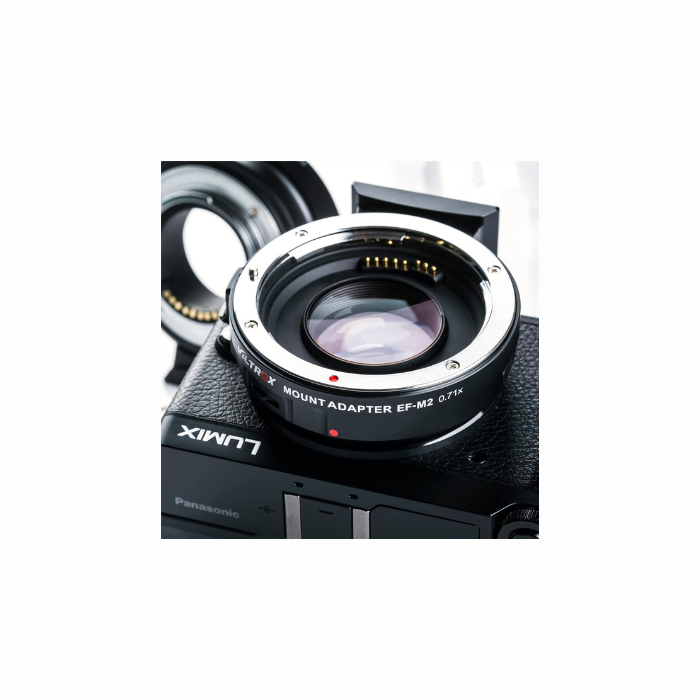 Este adaptador é ideal para profissionais e entusiastas que desejam expandir suas possibilidades criativas, utilizando uma ampla variedade de lentes Canon em sistemas MFT sem perder funcionalidades importantes.
