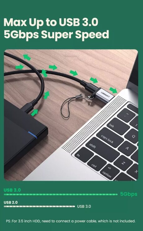 Adaptador – UGREEN – De USB 3.0 Para USB-C – Modelo US276 – COD:LND