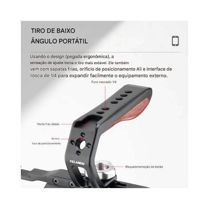 <li data-start="1163" data-end="1229">Suporte de câmera vertical L'bracket compacto (10,7 cm x 4 cm)</li>