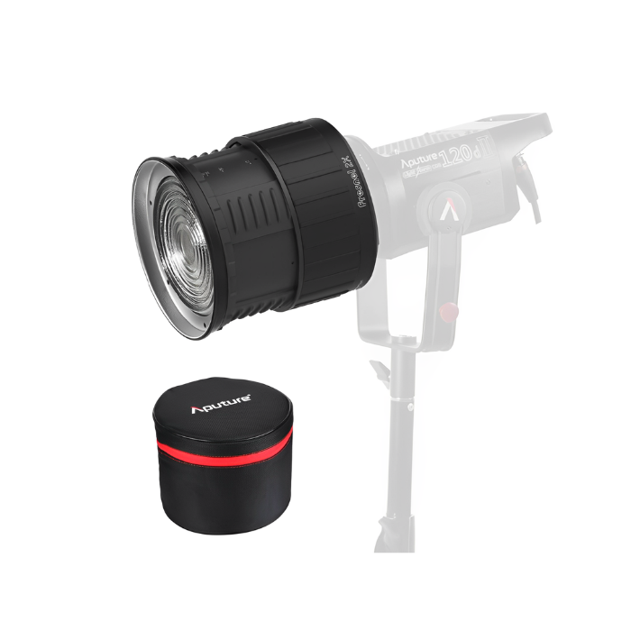 O Aputure Fresnel 2X é um modificador de luz projetado para ampliar o alcance e a intensidade luminosa de refletores Aputure compatíveis. Com encaixe Bowens, ele proporciona um feixe de luz ajustável de 12° a 40°, permitindo maior controle sobre a iluminação em produções audiovisuais.