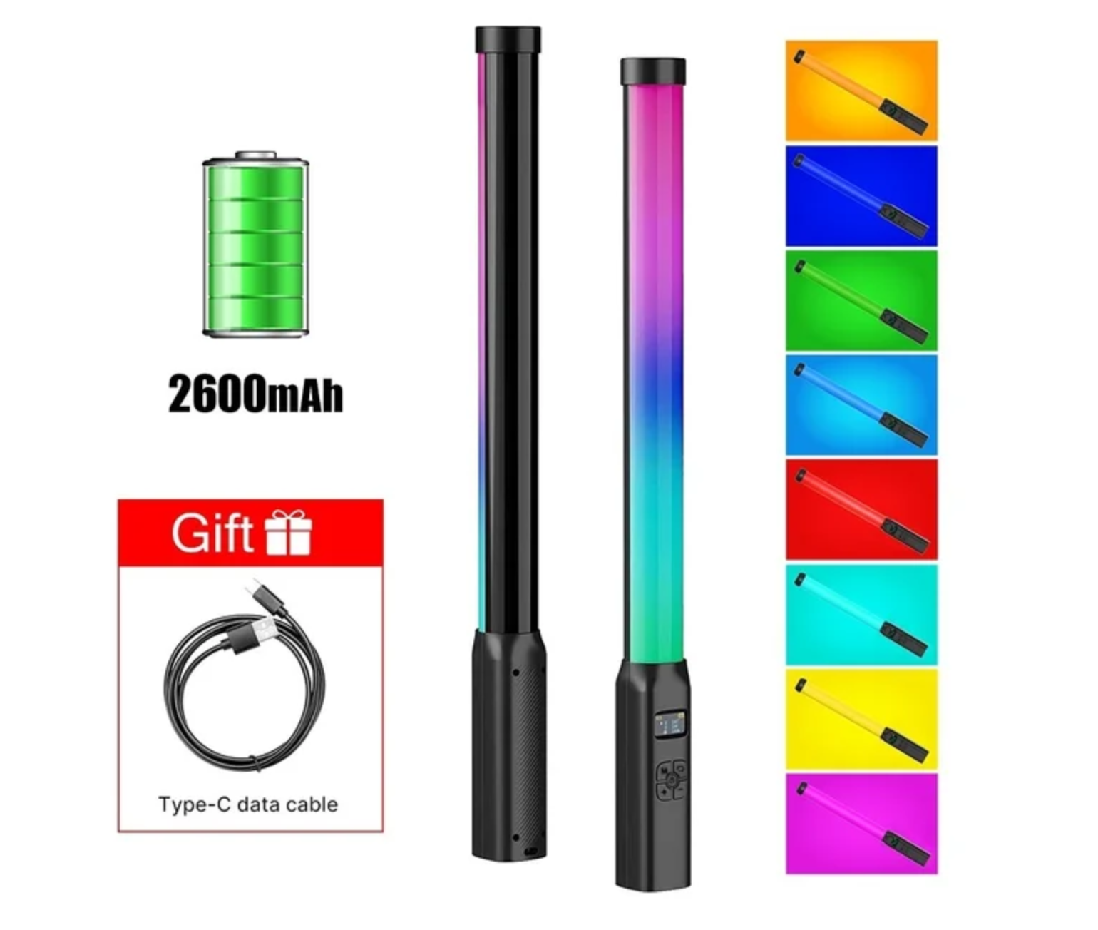 A alimentação por bateria recarregável oferece mobilidade total, tornando o Bastão de LED RGB Portátil – Fill Light ideal para filmagens externas, ensaios fotográficos, vídeos criativos, produções cinematográficas e setups de streaming.