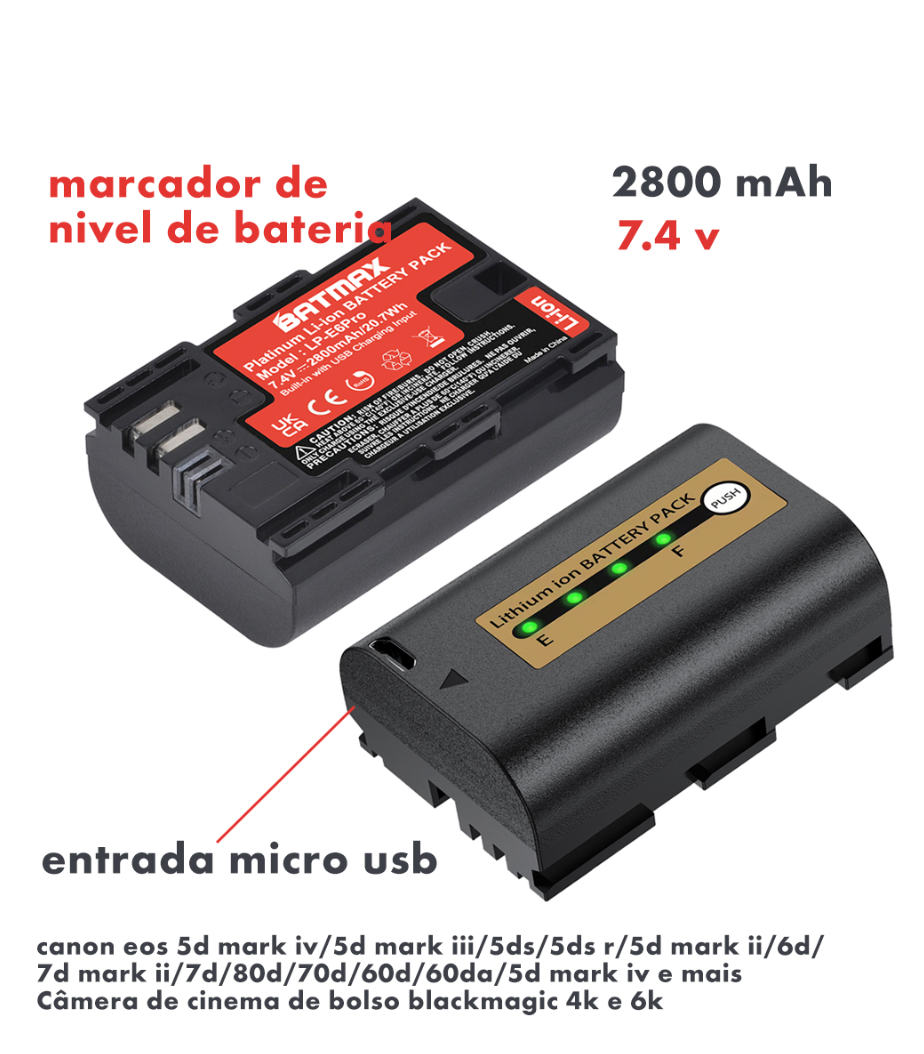 Seja para profissionais da fotografia ou videografia, ou para amantes da imagem, a Bateria LP-E6Pro – Batmax é a escolha definitiva para garantir que seu equipamento nunca fique sem energia no meio do trabalho.