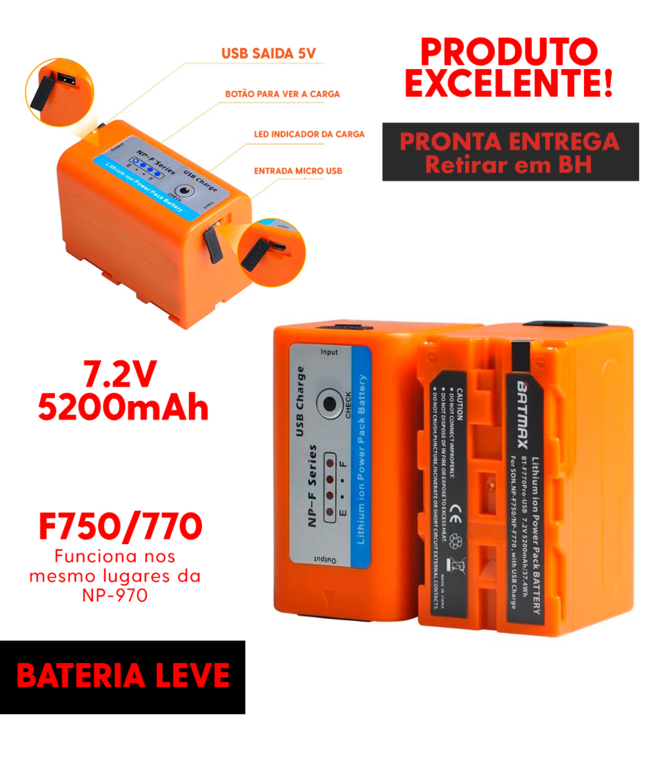 - Compatível com baterias NP-F750 e NP-F770