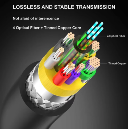 O Cabo HDMI Macho para HDMI Macho – Fibra Óptica é uma solução de alta performance para transmitir sinais de alta definição com qualidade impecável. Ideal para quem busca transmissão de vídeo em 8K Ultra HD com total estabilidade e sem perdas de qualidade, esse cabo utiliza fibra óptica, proporcionando uma conexão de longo alcance sem degradação do sinal. Com ponta de ouro, garante a melhor condutividade para uma transmissão sem interferências.