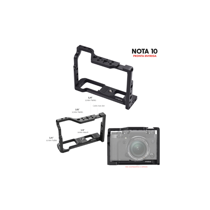 A Cage/Gaiola Andoer para Câmeras Fujifilm X-T2 e X-T3 é um acessório projetado para oferecer proteção e suporte extra à sua câmera, garantindo maior estabilidade e flexibilidade durante as filmagens. Feita de alumínio de alta qualidade, essa gaiola proporciona uma construção robusta e durável, permitindo que você monte diferentes acessórios, como microfones, luzes e monitores, sem comprometer a funcionalidade ou o peso da câmera.