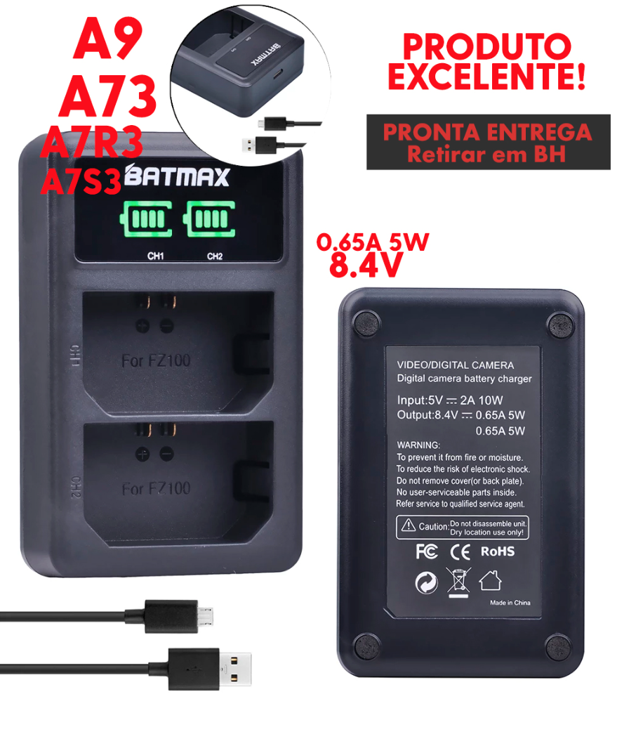 Ideal para uso profissional, o Carregador Batmax NP FZ100 é a escolha perfeita para quem busca qualidade, praticidade e eficiência no carregamento de suas baterias.
