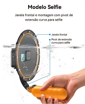 Com uma estrutura robusta e vedação eficiente, o Dome Selfie Telesin permite explorar ambientes aquáticos sem comprometer a segurança da sua câmera, sendo perfeito para mergulhos, esportes aquáticos e aventuras na praia ou piscina.
