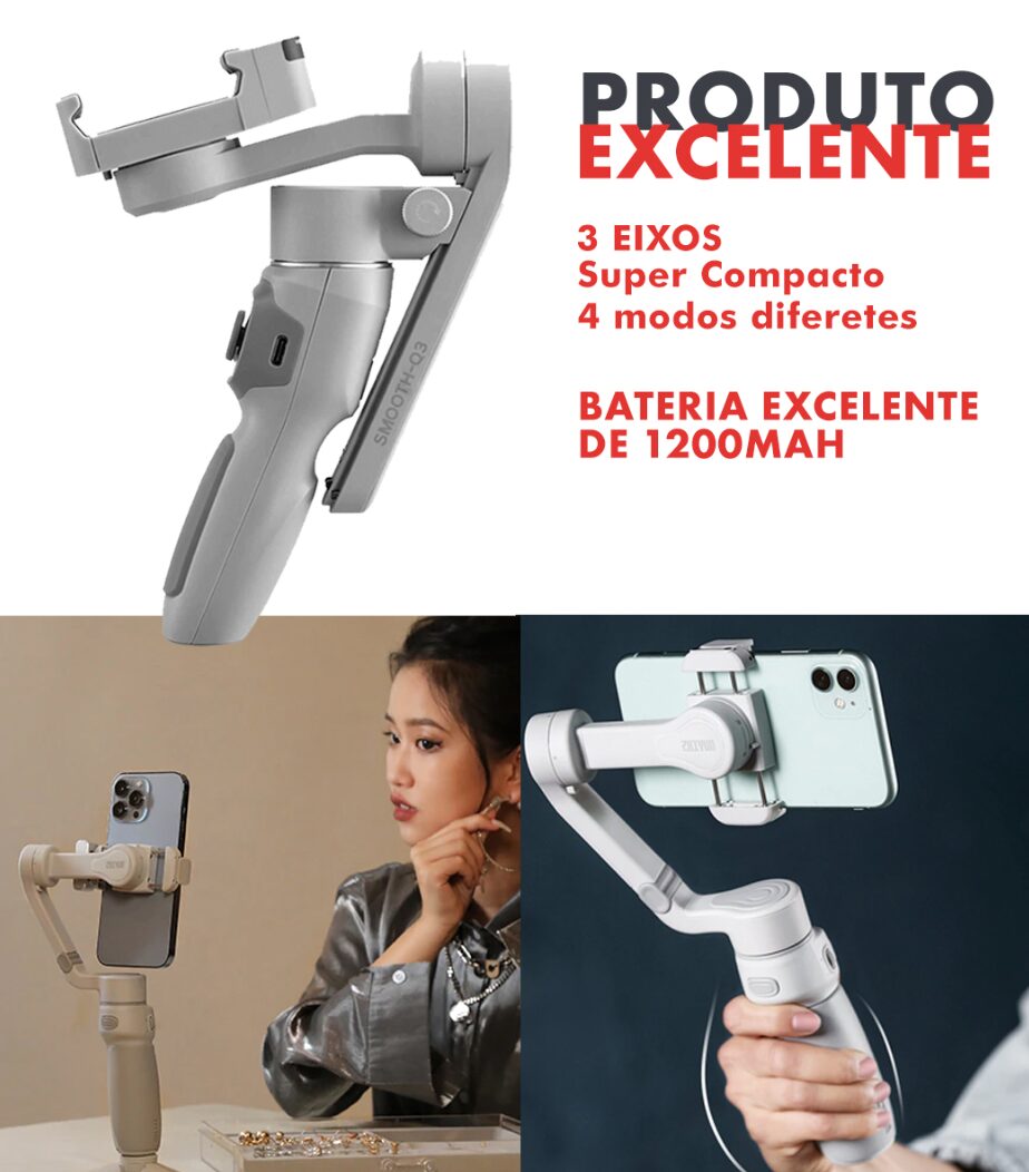 A compatibilidade com aplicativos dedicados expande suas possibilidades, oferecendo efeitos especiais, transições automáticas e edição simplificada. Com uma bateria de longa duração, o Smooth Q4 é a ferramenta perfeita para quem deseja qualidade profissional na palma da mão.