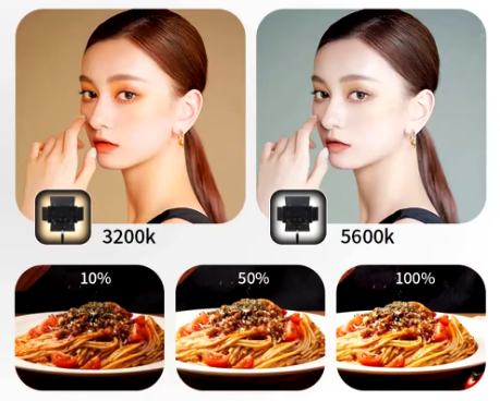 - Ajuste de Temperatura de Cor (3200K-6500K): O PRO 800 oferece um ajuste contínuo de temperatura de cor, variando de 3200K (luz quente) a 6500K (luz fria), proporcionando a flexibilidade necessária para adaptar a iluminação conforme o ambiente e o efeito desejado. Perfeito para ambientes com diferentes fontes de luz ou para criar atmosferas específicas em fotos e vídeos.