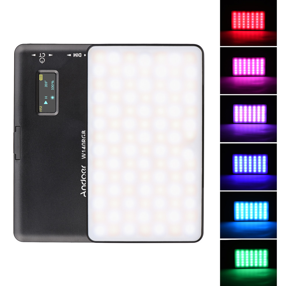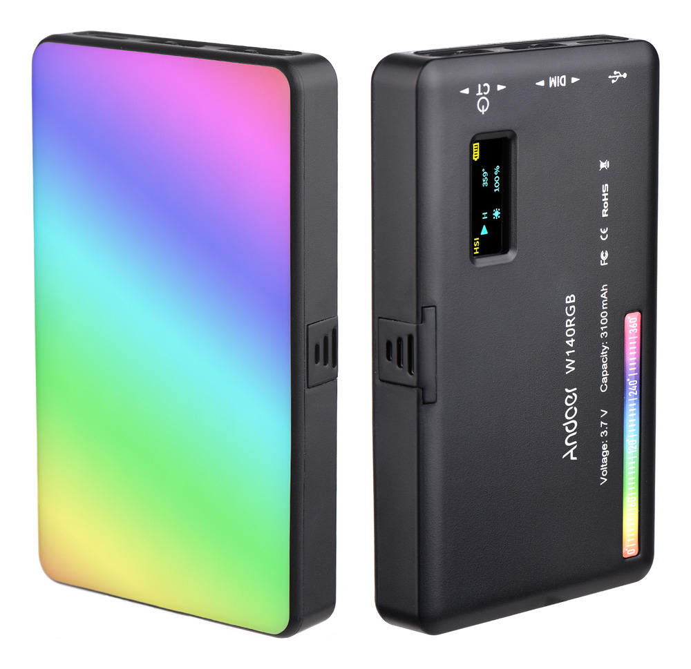 Equipado com 140 LEDs de alta qualidade, o Andoer W140 proporciona iluminação RGB completa, permitindo a escolha entre milhões de cores para criar atmosferas únicas em vídeos e fotos. Além disso, a sua temperatura de cor ajustável possibilita variação entre tons quentes e frios, garantindo maior controle e personalização da luz de acordo com o ambiente e a estética desejada.