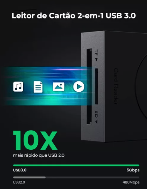 Oferta!Leitor De Cartão – Ugreen – 2 em 1 – 5Gbps – COD:LNDSE
