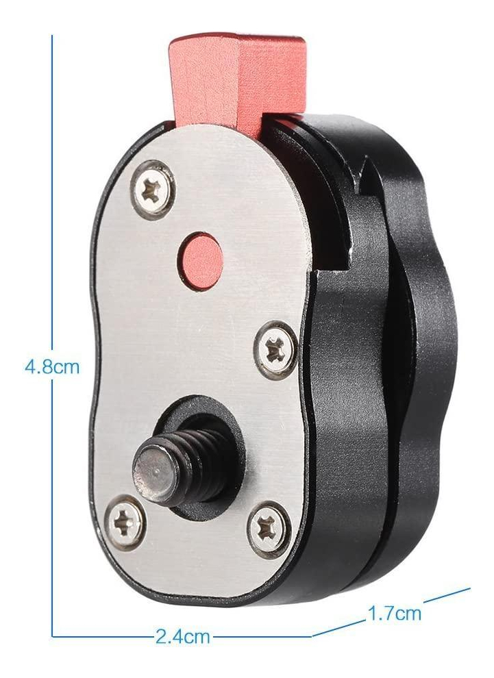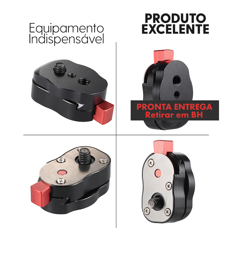 O Mini Engate Rápido Quick Release é uma solução compacta e eficiente para quem precisa de praticidade ao montar e desmontar equipamentos, como câmeras, tripés, estabilizadores e outros dispositivos fotográficos ou audiovisuais. Com um mecanismo de liberação rápida, ele permite que você fixe ou remova sua câmera ou acessório de forma ágil e segura, sem complicações e sem perder tempo durante as gravações.