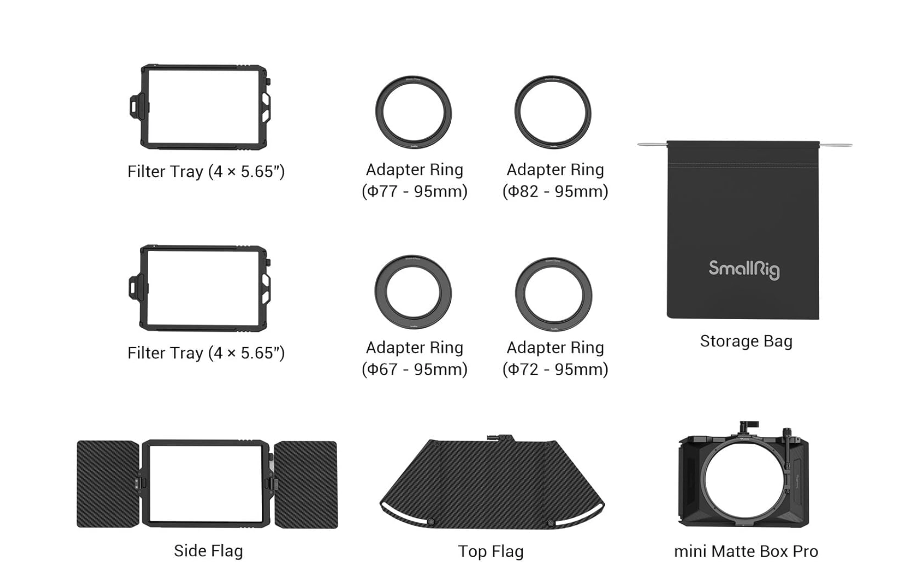 Além disso, o Mini Matte Box Pro SmallRig vem com acessórios adicionais, como aletas ajustáveis para personalização da iluminação e fácil controle dos efeitos de luz. Ele é a escolha perfeita para produções de alto nível, sem abrir mão da portabilidade e eficiência.