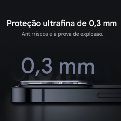 Fabricado com vidro temperado de alta resistência, o protetor protege as lentes contra danos acidentais, preservando a nitidez das imagens. Seu design ultrafino e transparente mantém a estética original do iPhone e não interfere na captura de luz ou no desempenho da câmera.