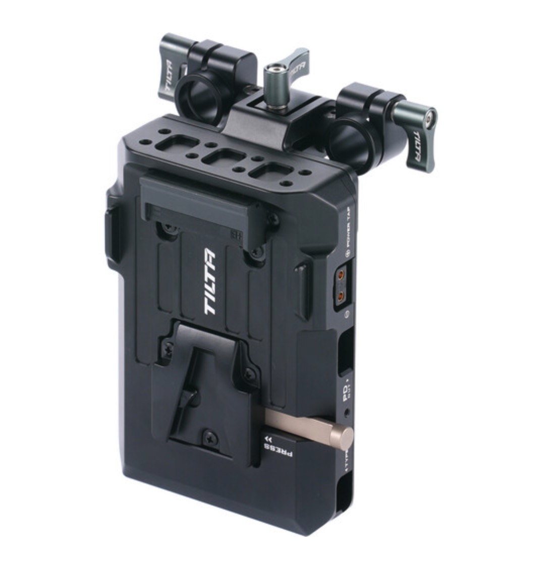 O Tilta PD V-Mount Battery Plate (Black) é um adaptador compacto e versátil para uso de baterias V-Mount em diferentes setups. Compatível com tripés, rigs e cages, oferece múltiplas saídas de energia, incluindo USB-C PD, D-Tap e DC, permitindo alimentar câmeras, monitores e acessórios simultaneamente. Construído em alumínio resistente, garante confiabilidade e durabilidade em produções profissionais.